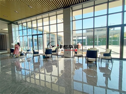今天分享的是隆德熙玉园售楼部大厅装修设计项目实景图分享。这间售楼部大厅整体设计装修风格为现代轻奢风,符合当下流行的设计趋势。大面积落地窗引入充足自然光线,让空间更显通透开阔,既满足了售楼部展示空间的采光需求,又通过光影变化增强了空间的动态美感。背景墙的格子式装饰柜,将实用功能与装饰性结合,在保持风格统一的前提下,实现了售楼部的信息传递功能,体现了现代轻奢风“功能与美学共生”的设计逻辑。地砖采用的是大面积的灰色大理石瓷砖,美观大气的同时也方便清理,同时还延伸了空间视觉效果。银川装修公司津都华丽会根据工装类型,给客户量身打造出售楼部大厅设计装修方案。